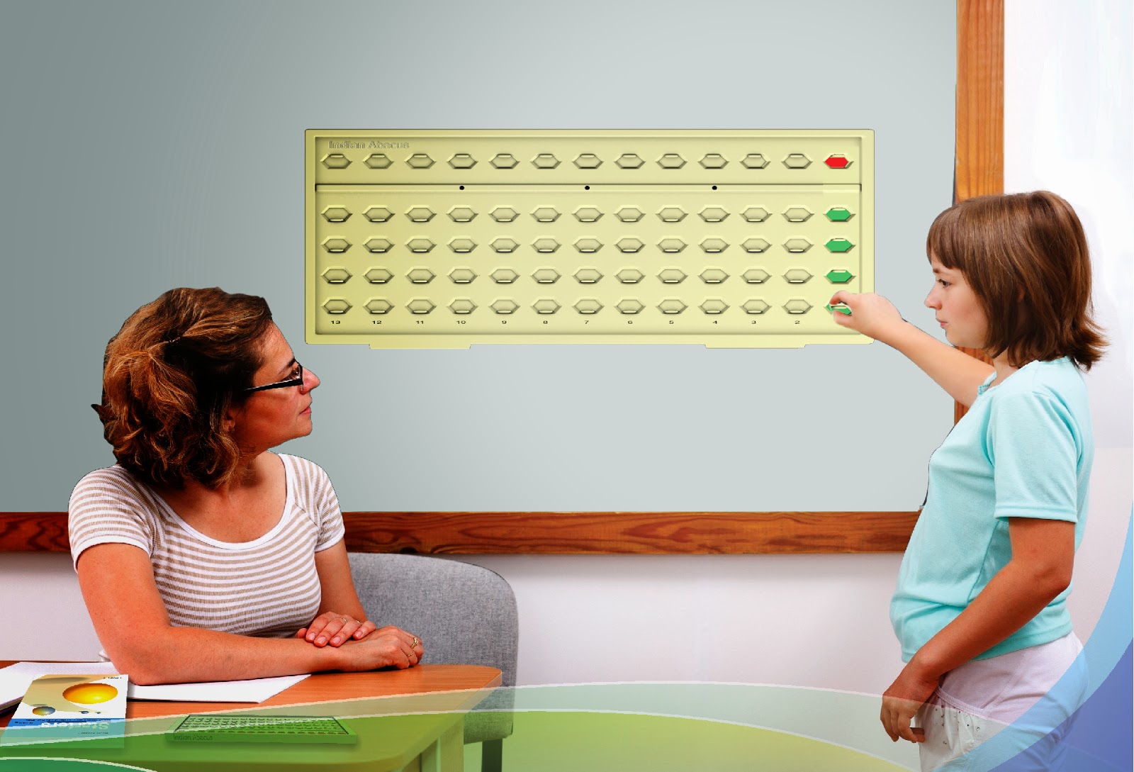 Every operation / number added, subtracted, multiplied or divided result in the formation of colour images corresponding to values, and act as Flash Cards. The non-value slider positions do not disturb the visualization process as it happens with the non-value bead positions of the Conventional Abacus.